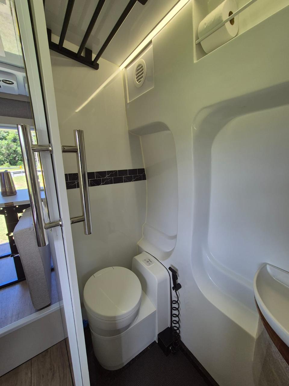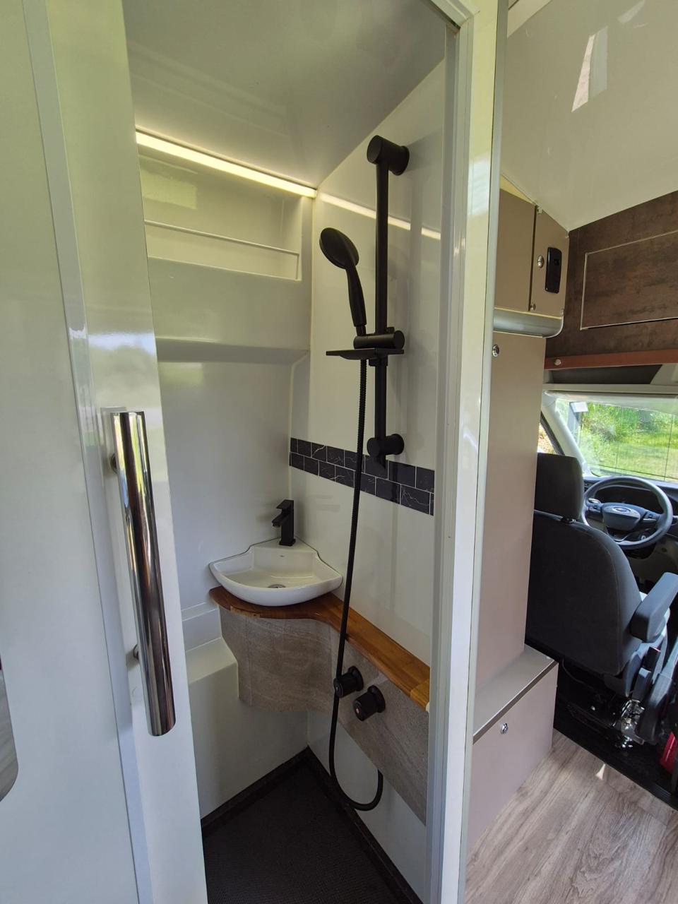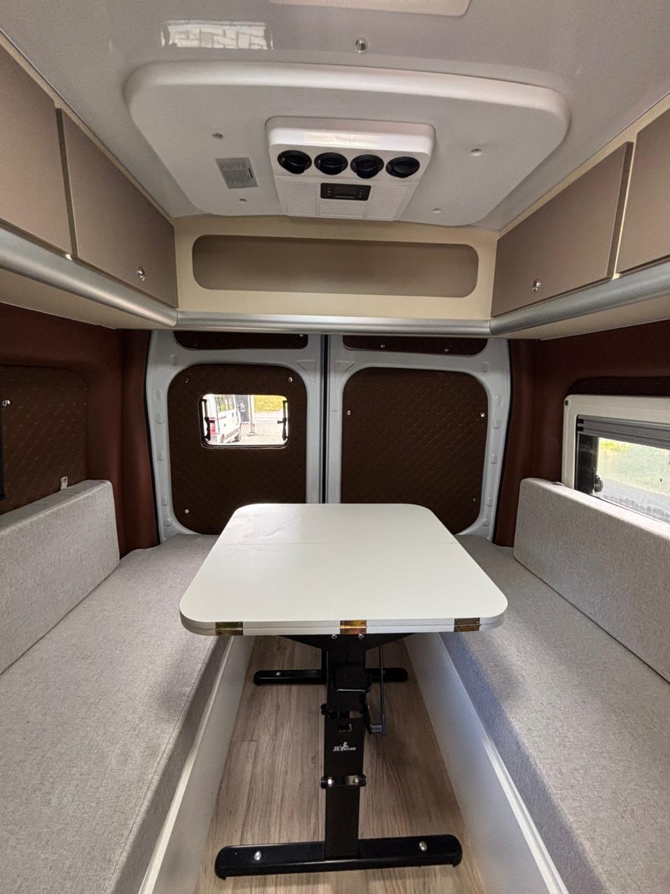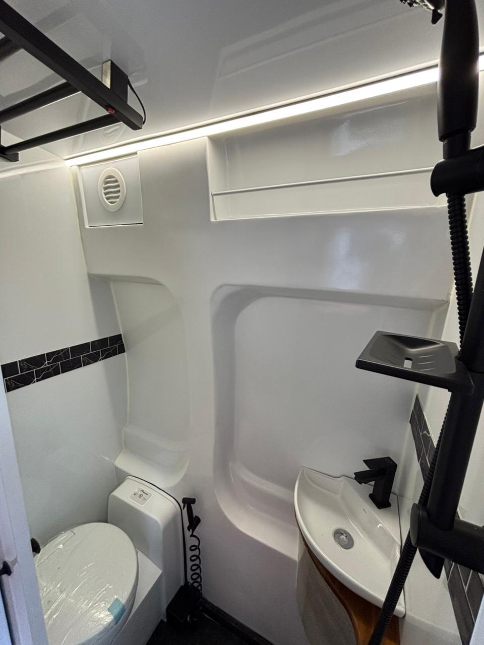 Um Motorhome de classe, com móveis revestidos e ótimo espaço no bagageiro. Possui barraca de teto que acomoda 2 adultos e um quarto de casal que vira sala de estar. Equipamento completo para você não passar perrengue.